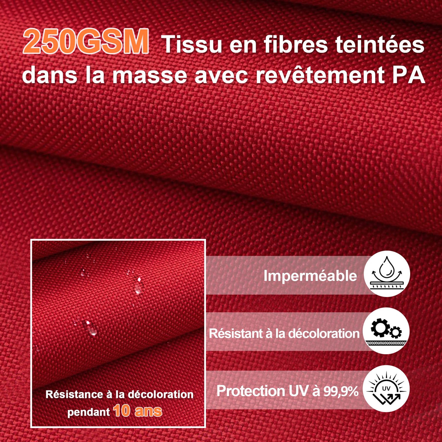 Matériau : Poteau en aluminium thermolaqué | Toile 250 g/m²